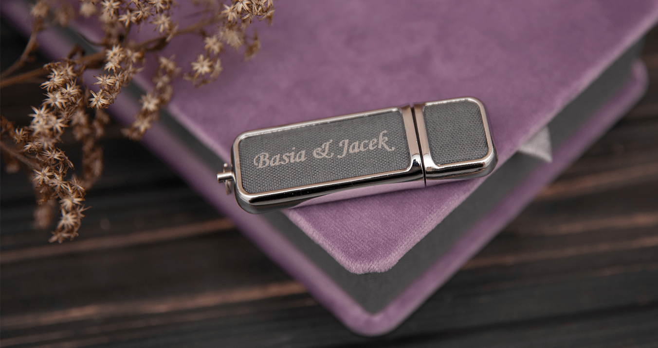 Nośniki pendrive dostępne są metalowe oraz w eco-skórze.Pendrive eko cechuje się dużym wyborem materiałów na którym możesz wykonać grawer z obu stron nośnika. Pojemność od 8 GB do 64 GB zmieści wszystkie zdjęcia z Twojego wydarzenia